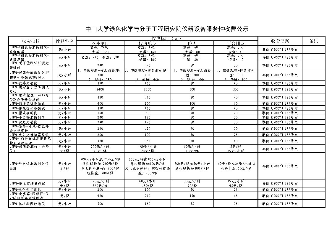 直播平台 绿色化学与分子工程研究院仪器设备服务性收费公示