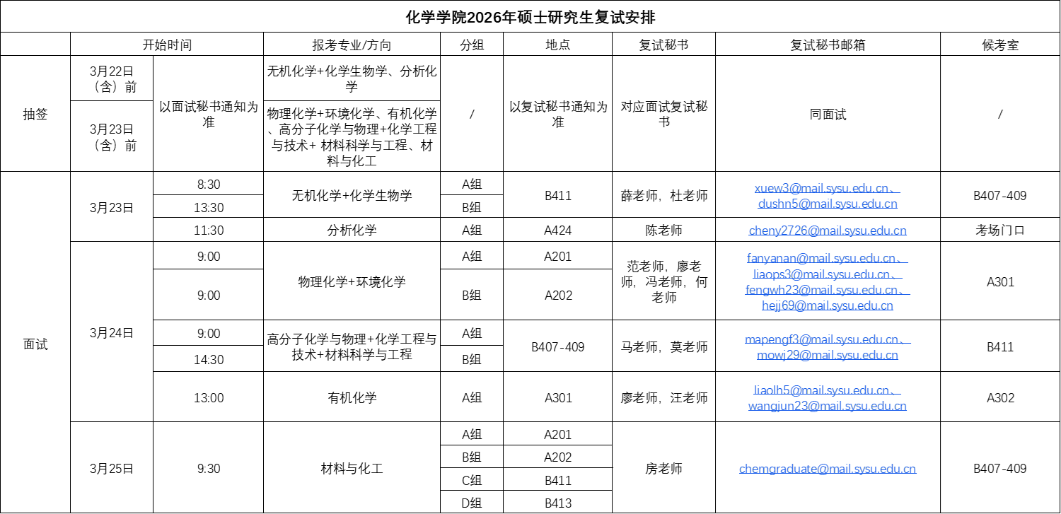 2.复试地点:广州市番禺区大学城外环东路132号直播平台 广州校区东校园化学与材料综合楼各考场;