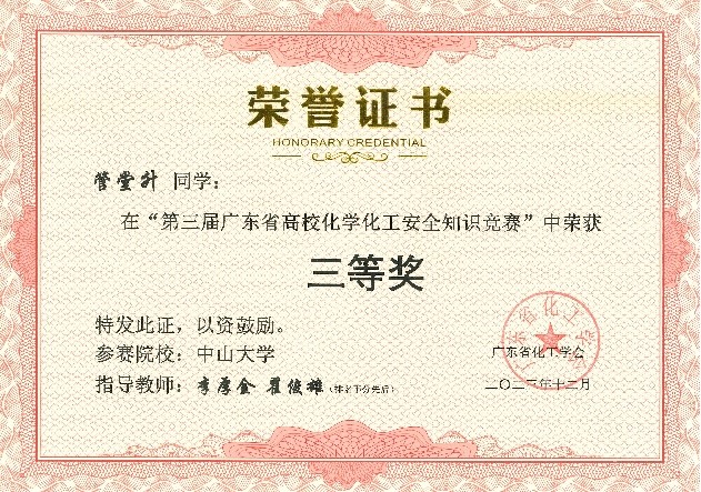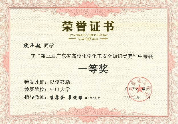 祝贺直播平台师生在2023年广东省高校化学化工安全知识竞赛中喜获佳绩
