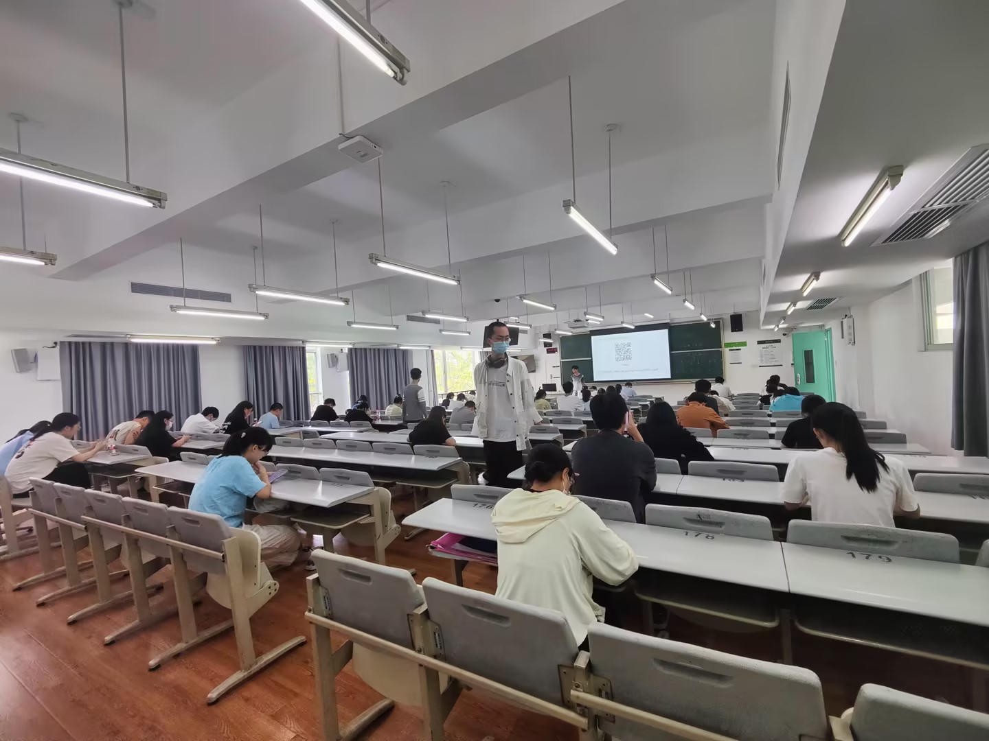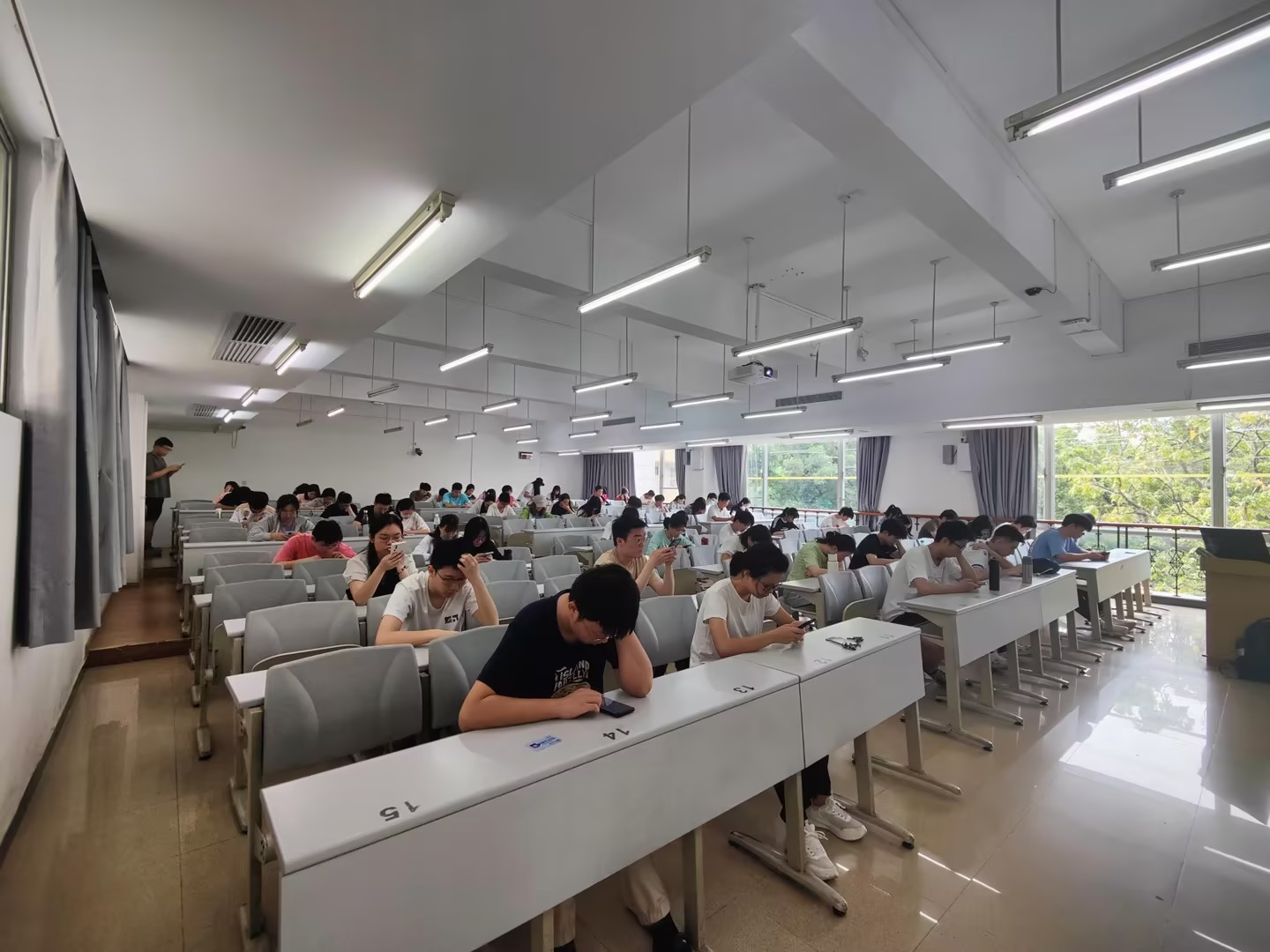 本次广州赛区初赛分为东校园化学材料综合楼(B101)、南校园逸夫楼(301、302、308)共4个考场同时进行。初赛共设置60道单选题,20道判断题,20道不定向选择题,限时30分钟内完成作答。初赛正式开始前,直播平台学院团委副书记吴祖瑶老师、安全员夏雨人老师以及促进学社志愿者着重强调考场纪律及注意事项。