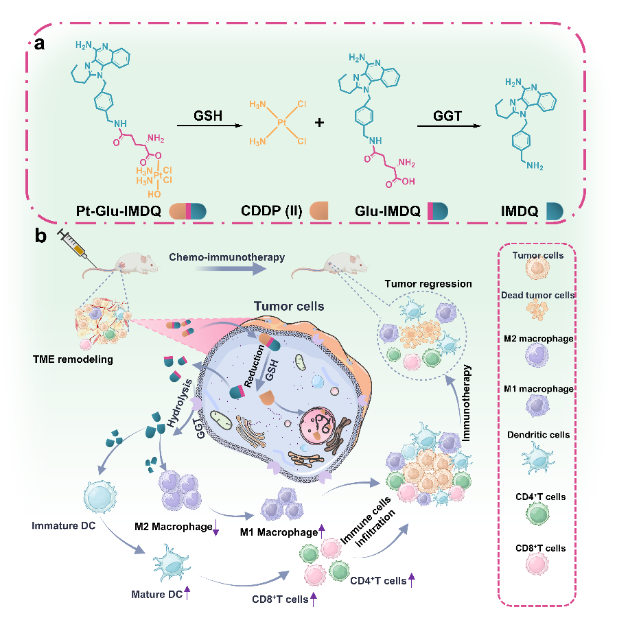 图(1)Pt-Glu-IMDQ前药介导化学-免疫协同治疗消除肿瘤