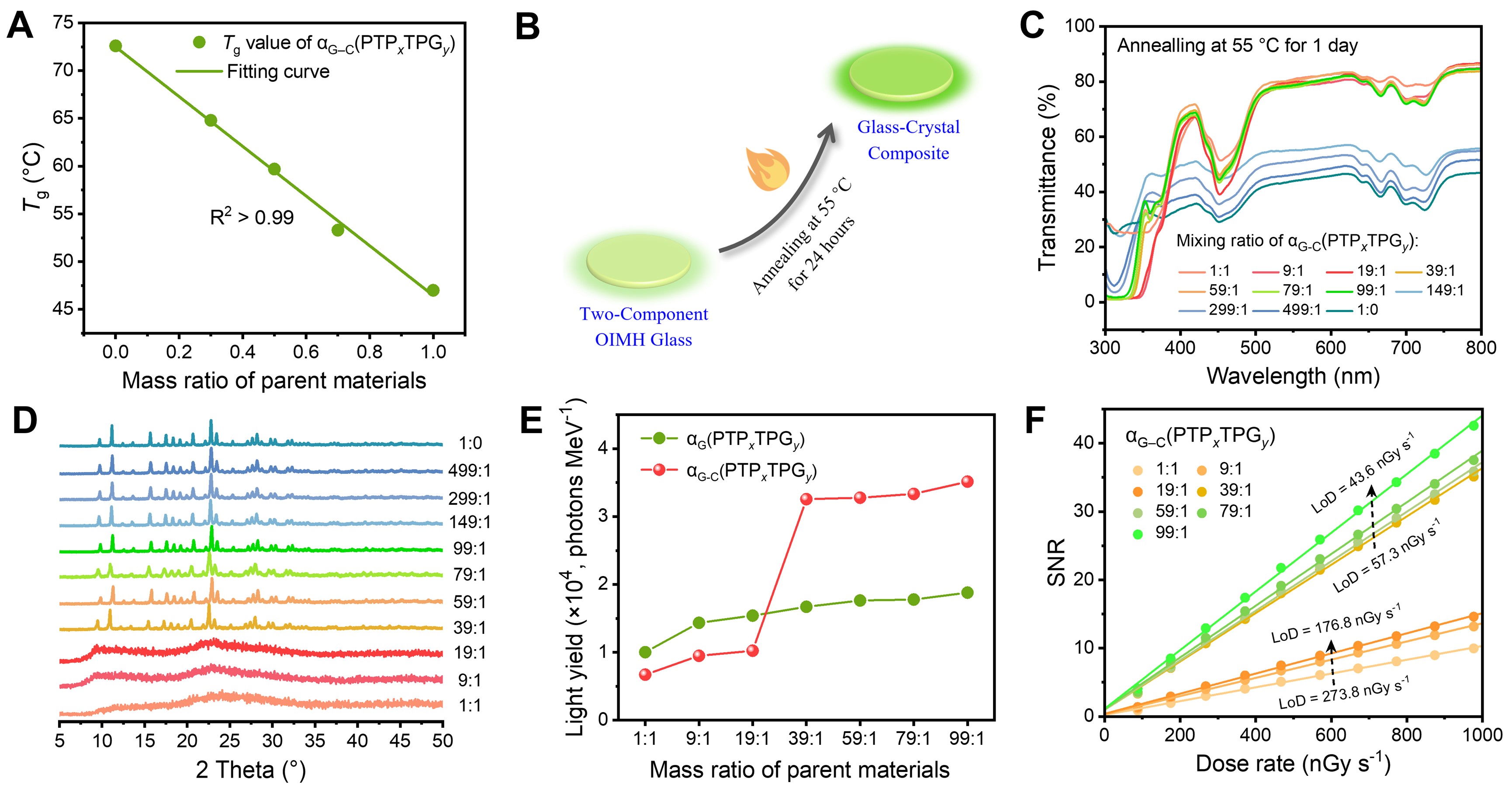 2. 双组份有机-无机杂化金属卤化物玻璃的原位结晶和闪烁性能优化。