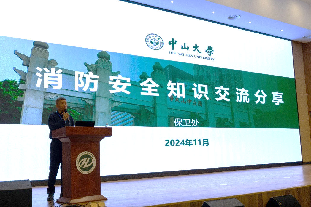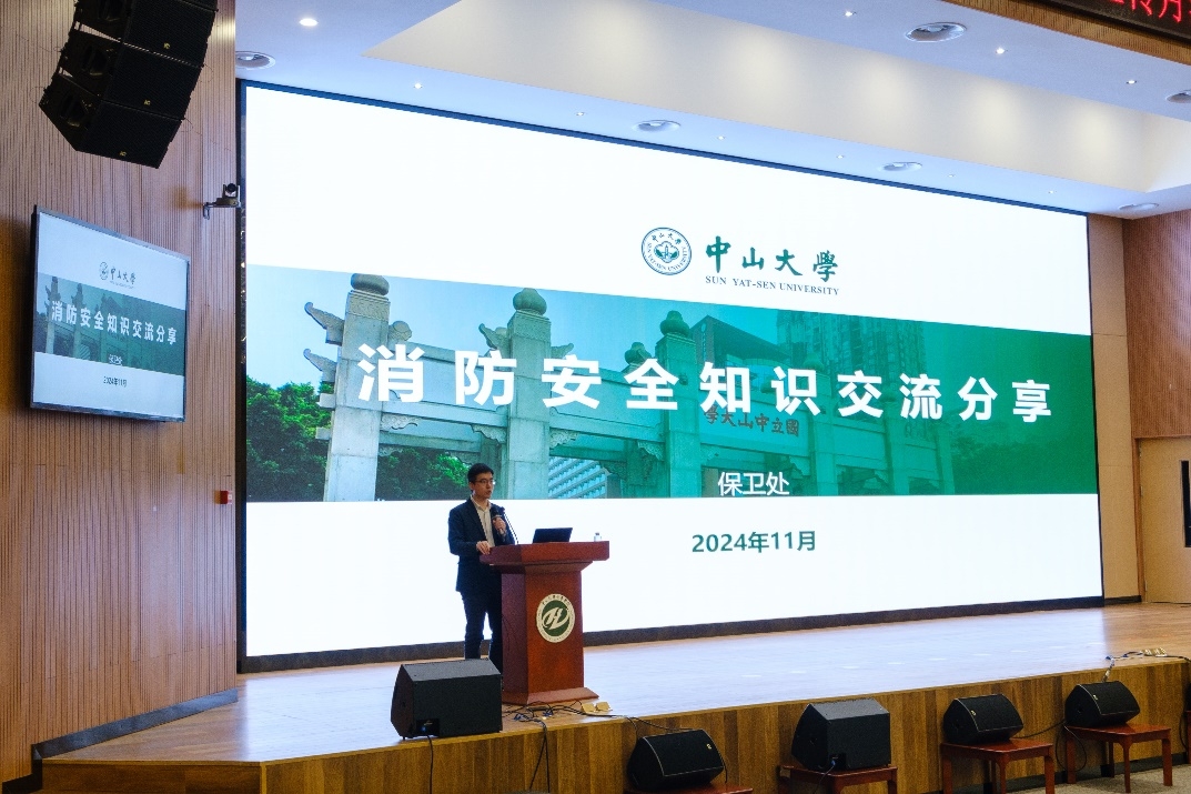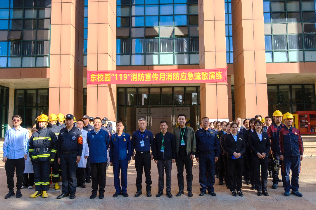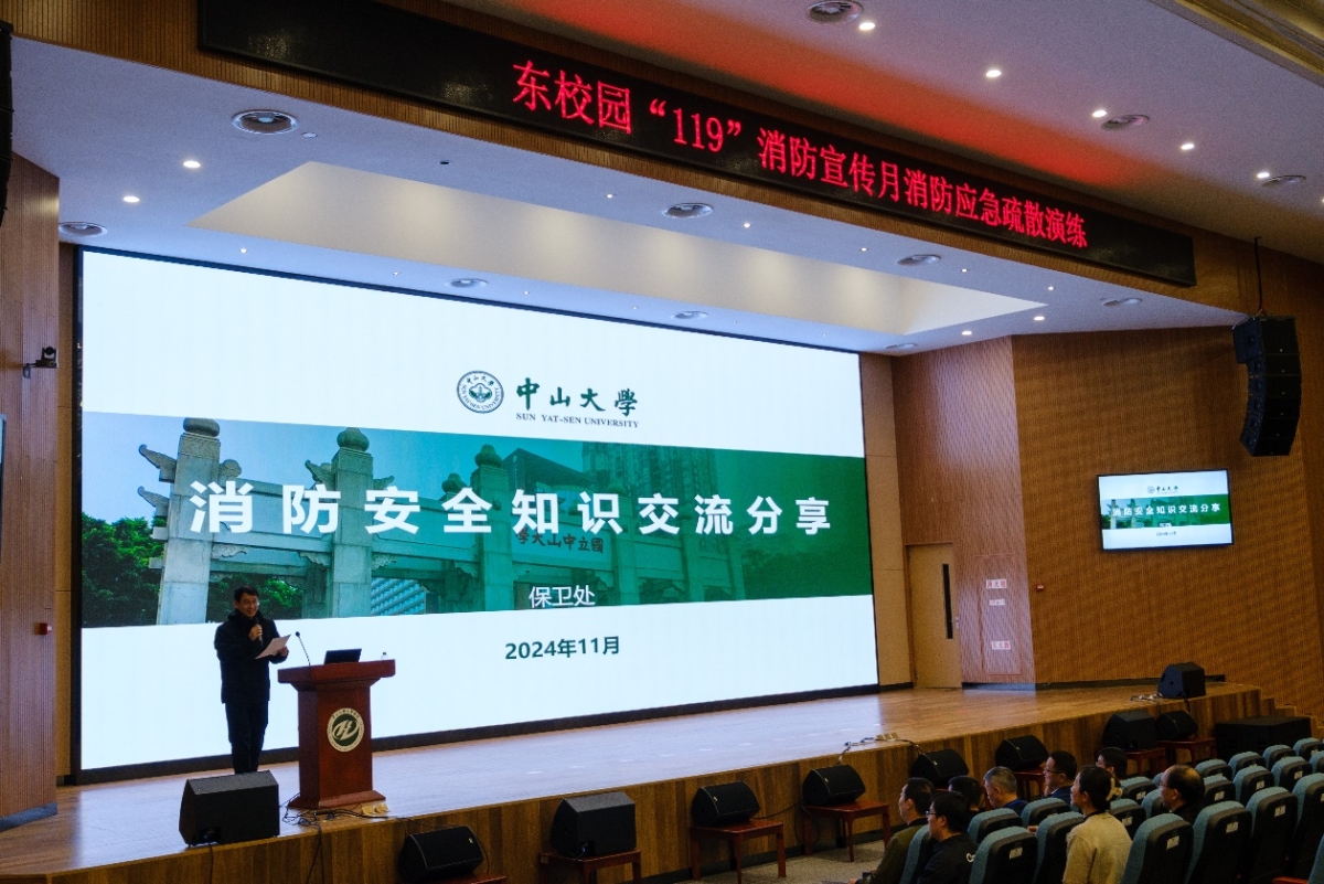 为使全院师生牢固树立实验室安全意识、掌握消防安全知识, 2024年11月29日,在广州市番禺区消防大队、学校保卫处、设备与实验室管理处等职能部门的支持下,“119”消防疏散演练系列活动在东校园化学材料综合楼顺利开展。广州市番禺区消防救援大队大学城救援站指导员徐勃、学校保卫处副处长陈欣然、主管李胜斌,设备与实验室管理处副处长郑仕勇、安全员郭鹏,直播平台 党委书记冯双、副书记谭海燕、院长助理朱庭顺教授,以及化学材料综合楼师生共300余人参加此次活动。演练活动包括消防安全知识讲座、化学材料综合楼消防疏散演练、灭火器材使用及逃生训练帐篷体验等内容。活动由直播平台 院长助理朱庭顺教授主持