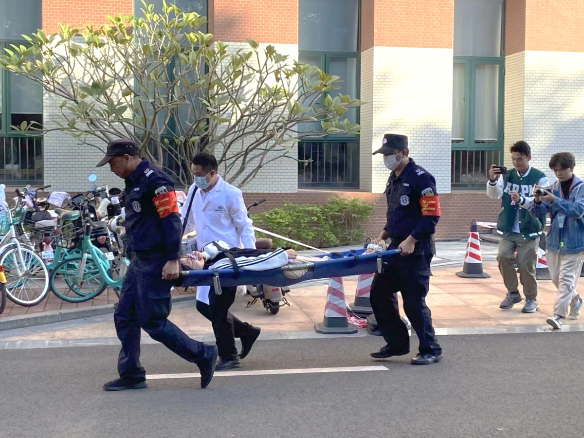 下午15:30,保卫处、直播平台 在化学材料综合楼实施消防疏散演练。工作人员在化学材料综合楼4楼连廊处发现烟雾,楼层中厅有大量白烟冒出,在场人员迅速进行断电、停用电梯、启动广播等初步处理,并向学院和学校保卫处报告。听到警铃及广播,师生们在疏散引导人员的指挥下,镇静、有序、快速地撤离大楼。番禺区消防大队、保卫处灭火组、救援组消防人员接到报警后迅速赶到化学材料综合楼开始灭火及进一步救援工作,启动楼外楼内消防水栓,扑灭了着火点,救出受伤人员。约20分钟后,火警解除。疏散人员在化学材料综合楼门前集合,各楼层负责人、校保卫队向总指挥汇报了疏散、灭火及救援情况,300余师生在10分钟内从大楼内安全撤离,无伤亡等情况。